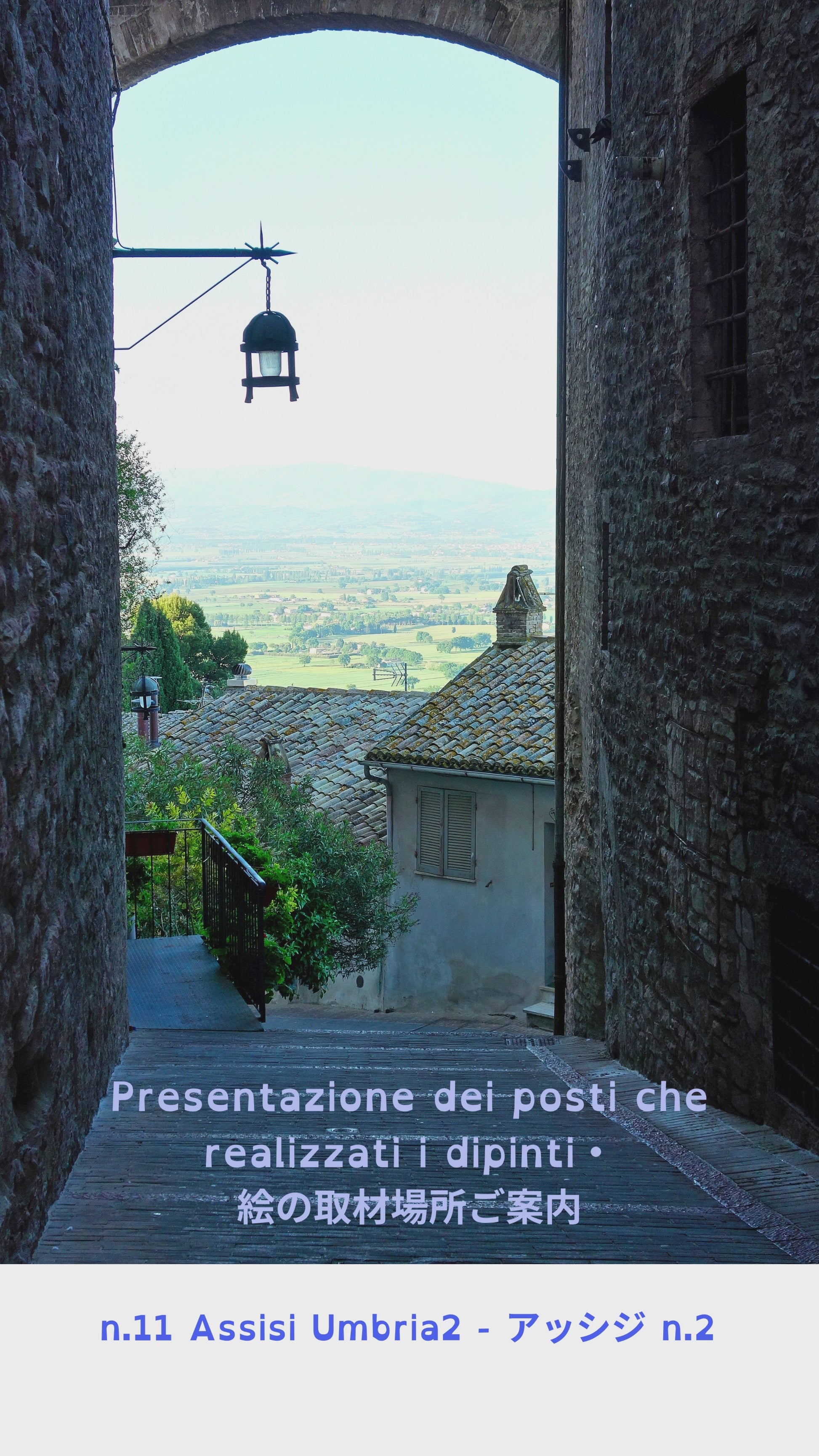 Nella pianura nebbiosa, potevo vedere una strada dritta che si dirigeva verso Assisi, e il sole, che illuminava una piccola luce, scompariva lentamente dietro le montagne.