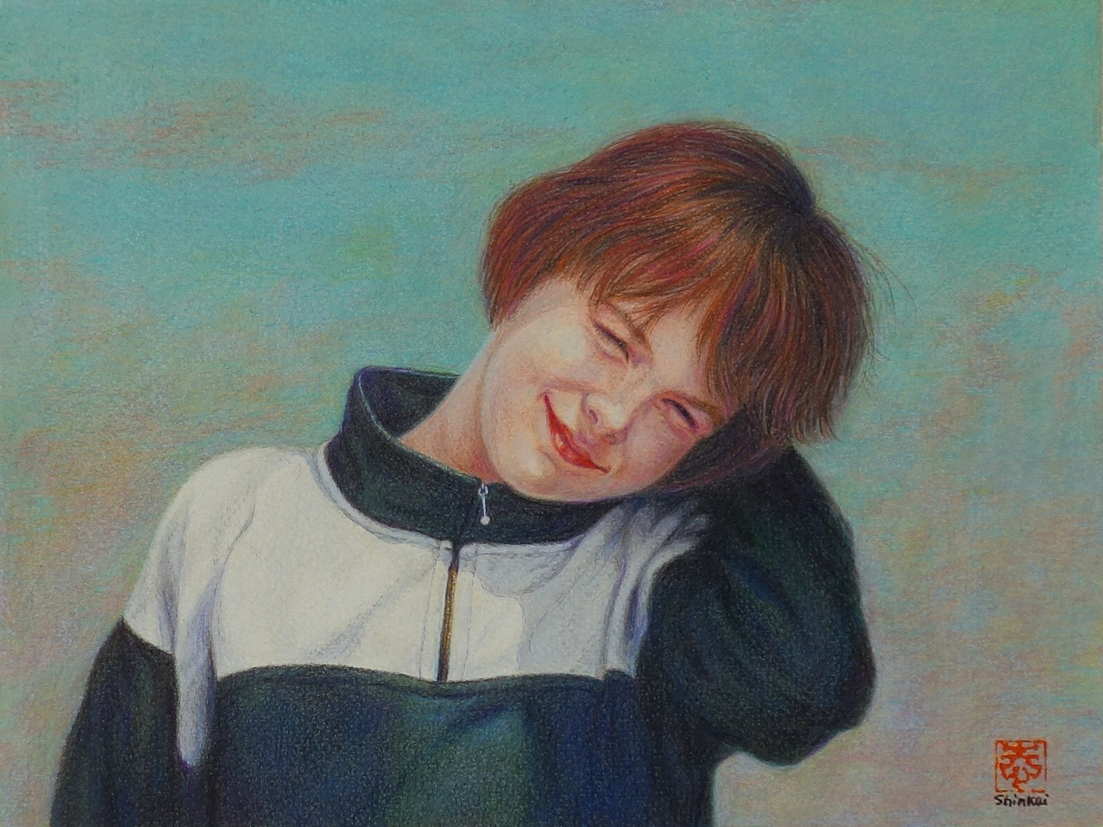 Mi è piaciuta la foto in cui socchiudeva timidamente gli occhi, così ho iniziato a disegnarla.