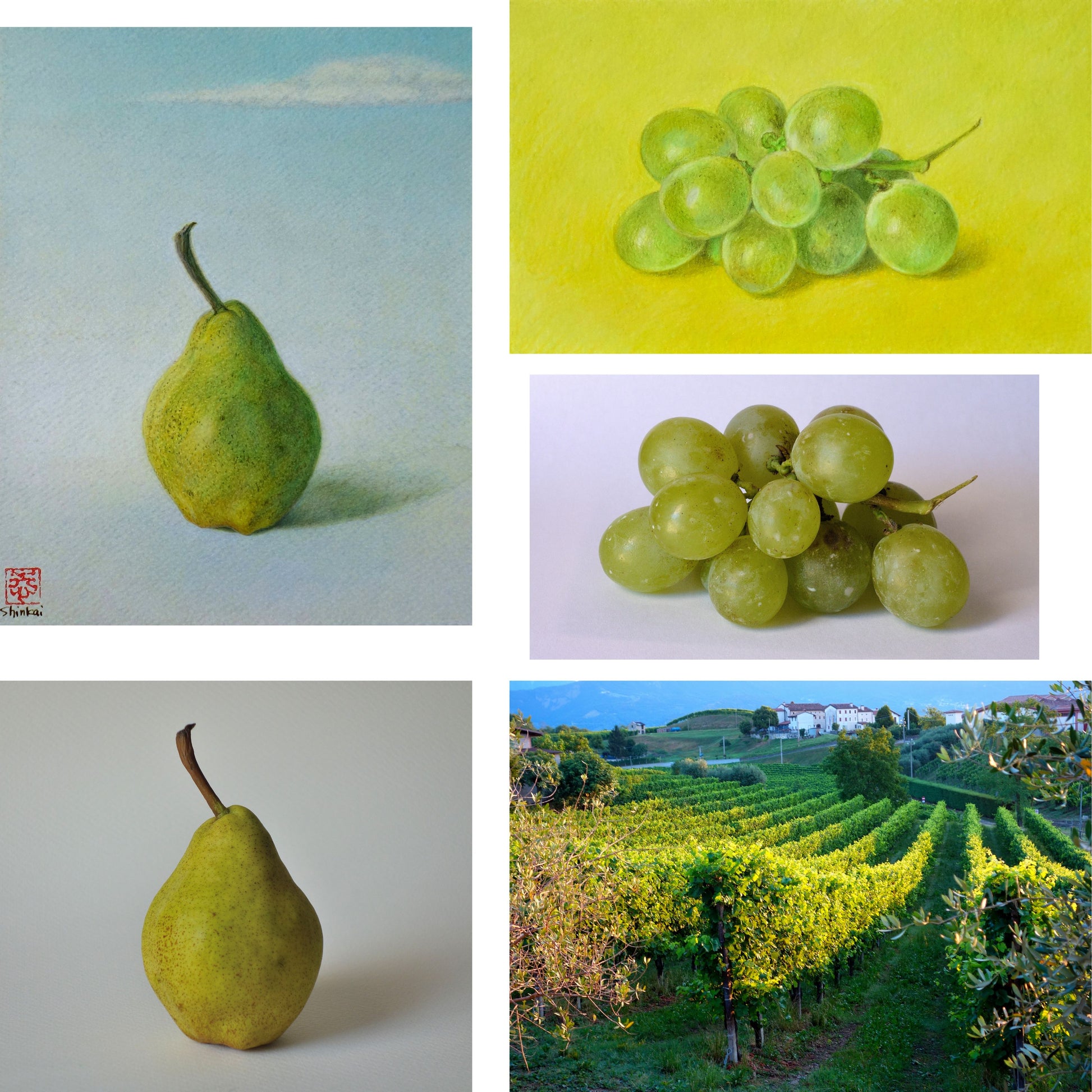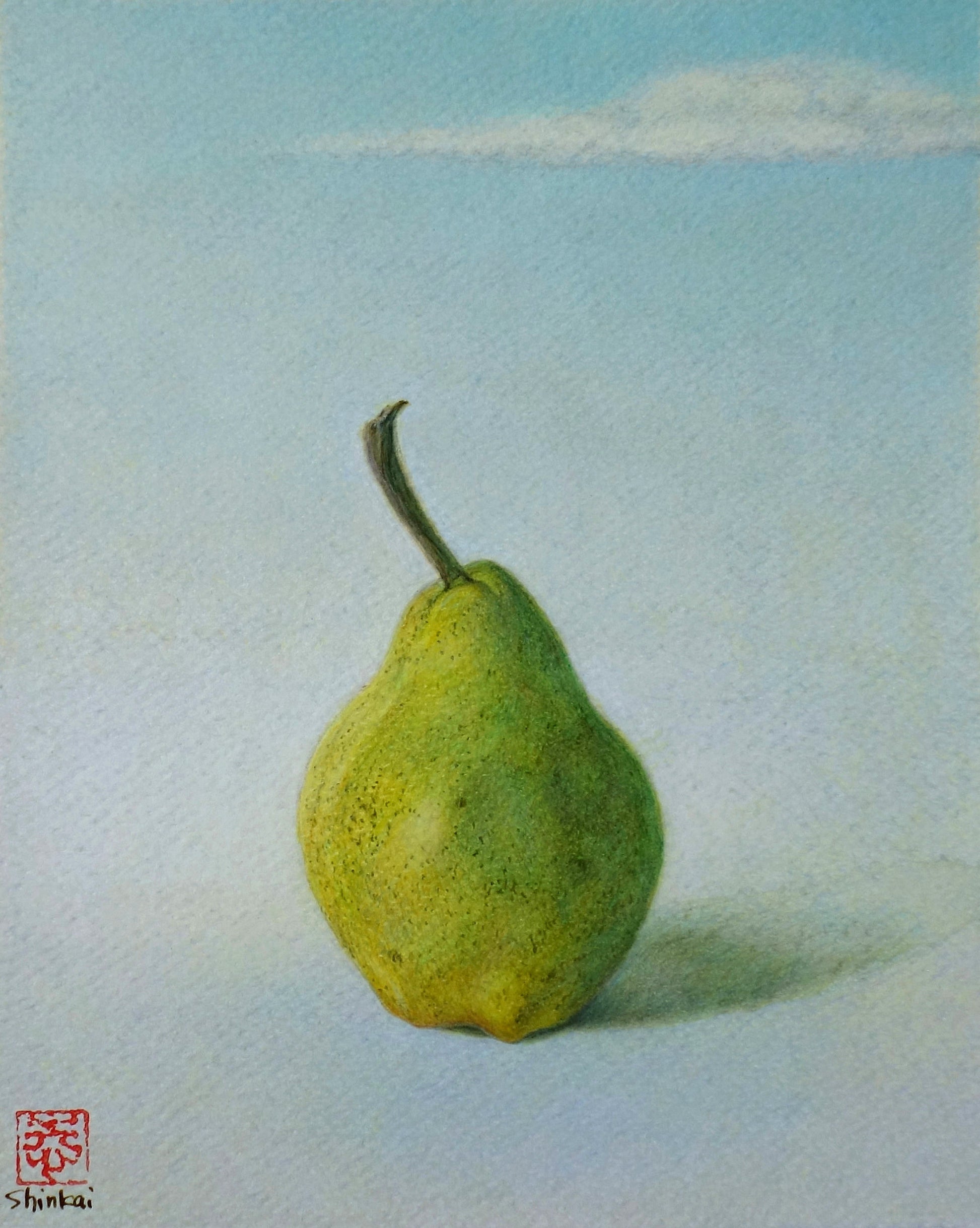 Applica uno strato di azzurro cielo brillante, poi aspettando dei giorni e applica degli altri stratti, controllando l'evoluzione del colore; anche applicando dei color alla pera più chiaro.